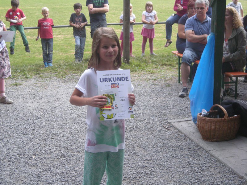 Als kleiner Höhepunkt wurden den Teilnehmern der diesjährigen Judo-Safari die Sarfariurkunden unter großem Beifall der Eltern und aller Kinder überreicht werden. Vom gelben Känguruh bis hin zum schwarzen Panther wurden alle verschiedenen Safari-Abzeichen verliehen.