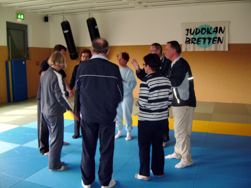 Im Rahmen der Prävention von Gewaltstraftaten führte der Judokan Bretten am Samstag, den 20.03.2010, ein Selbstbehauptung- und Selbstverteidigungsseminar für Seniorinnen und Senioren durch. Für solche Veranstaltungen stehen dem Judokan mehrere durch das Polizeipräsidium Karlsruhe ausgebildete Gewaltschutztrainer zur Verfügung. Die durch die Teilnehmer selbst angeregte und organisierte Veranstaltung hatte ihren Schwerpunkt im theoretischen Teil, aber auch beim Rollentraining und beim Üben von Abwehrtechniken waren die Seniorinnen und Senioren mit großem Interesse und Engagement bei der Sache. Sowohl für die Teilnehmer als auch die Trainer war die Veranstalter sehr informativ und machte allen viel Spaß.